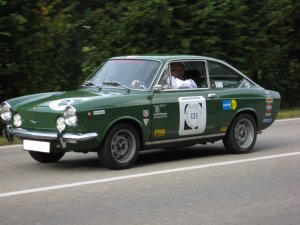 Auf diesem Bild ist der Fahrwerksumbau zu erkennen, der Wagen liegt 3 - 4cm tiefer und ist 4cm breiter. Dadurch liegt der Fiat deutlich satter und stabiler auf der Straße.